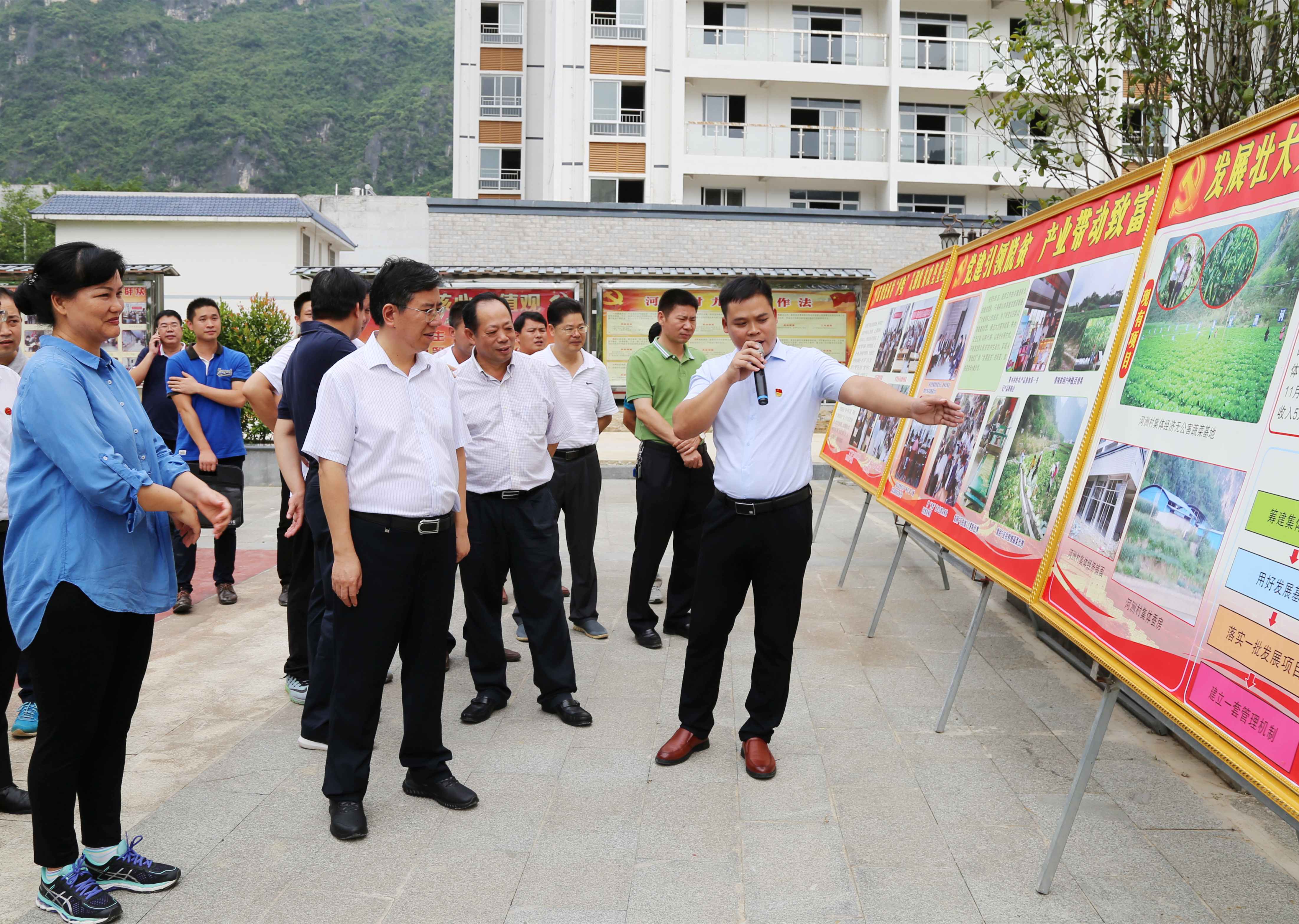 2017年10月10日,自治区党委常委、组织部部长喻云林到集团公司定点帮扶村凌云县河洲村调研。自治区财政厅厅长关礼,国开行广西分行党委书记、行长谢志军,百色市委副书记、统战部部长杨春庭,集团公司党委书记、董事长周文等有关单位负责人陪同调研。