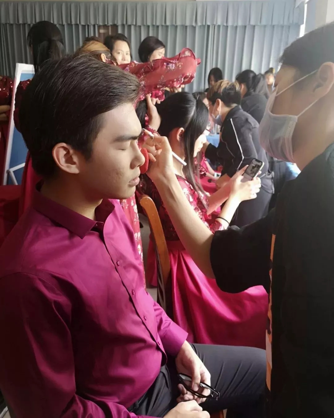 演员们抓紧时间化妆穿衣,为舞台上的完美呈现做好准备。