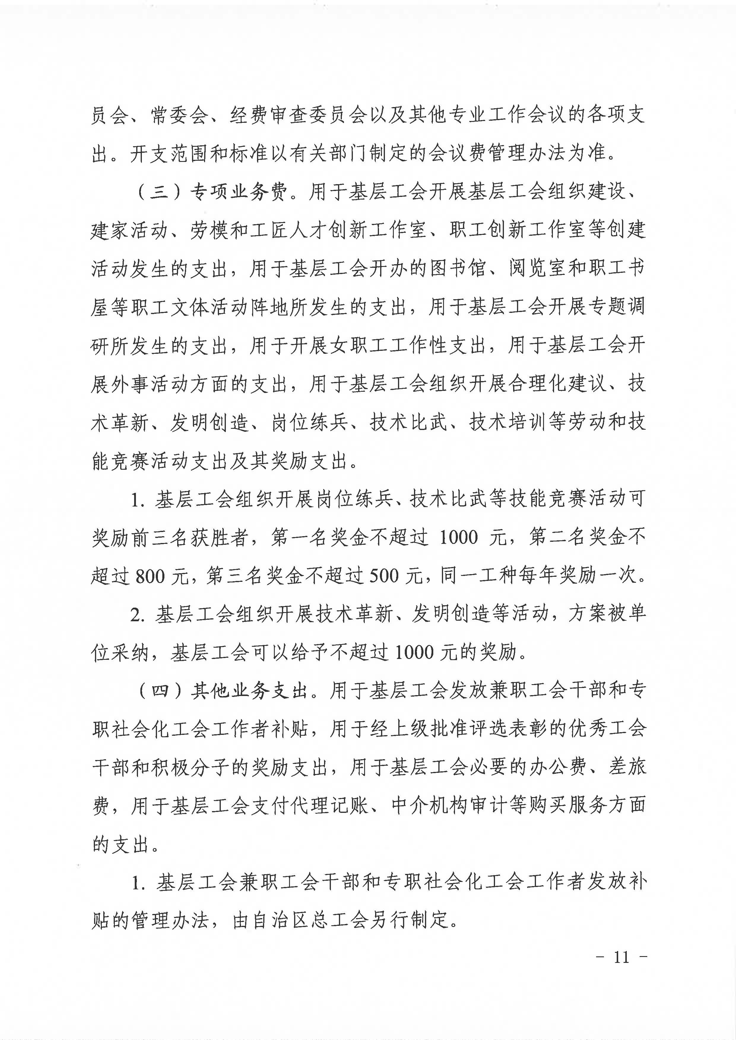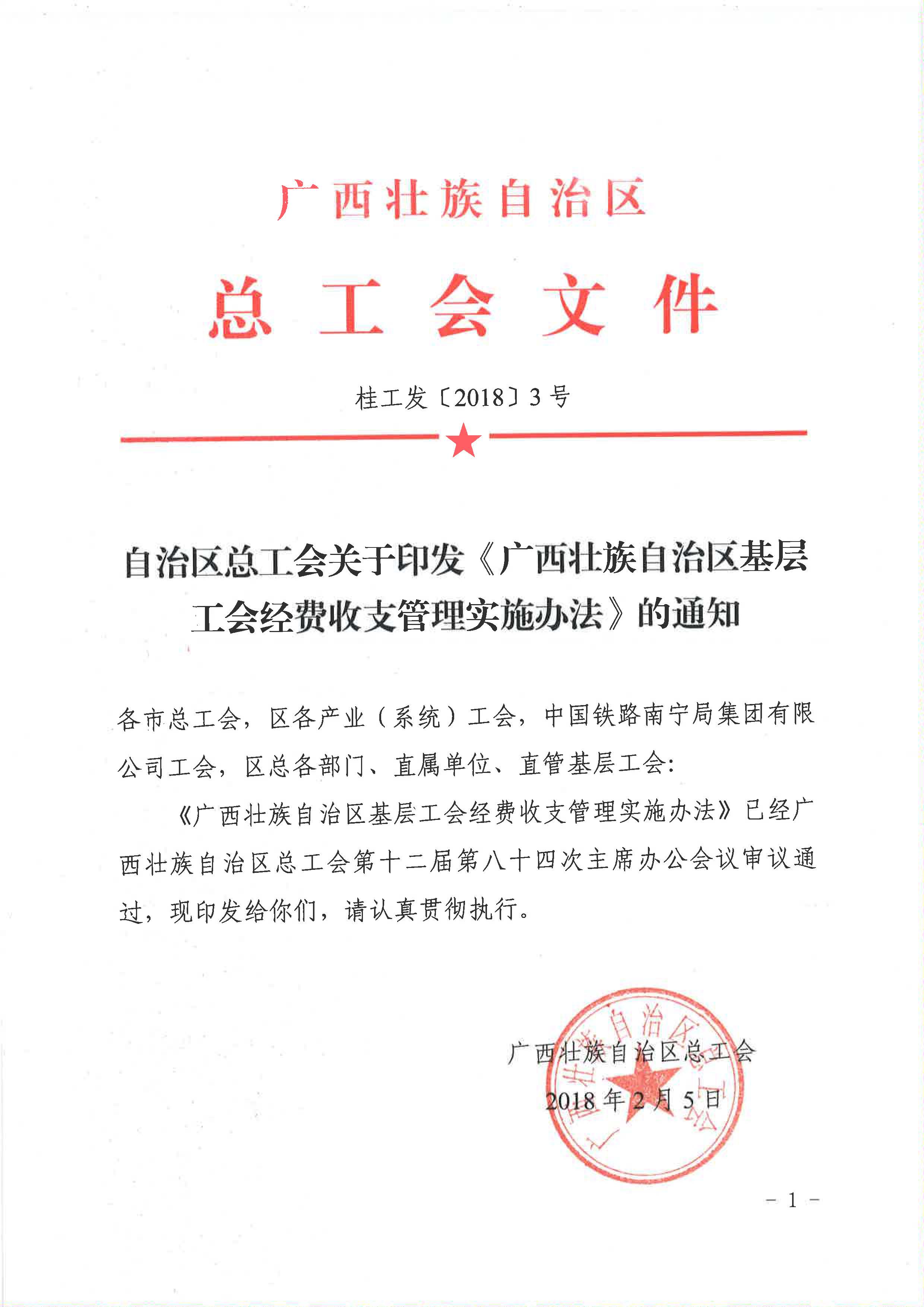 关于印发《广西壮族自治区基层工会经费收支管理实施办法》的通知